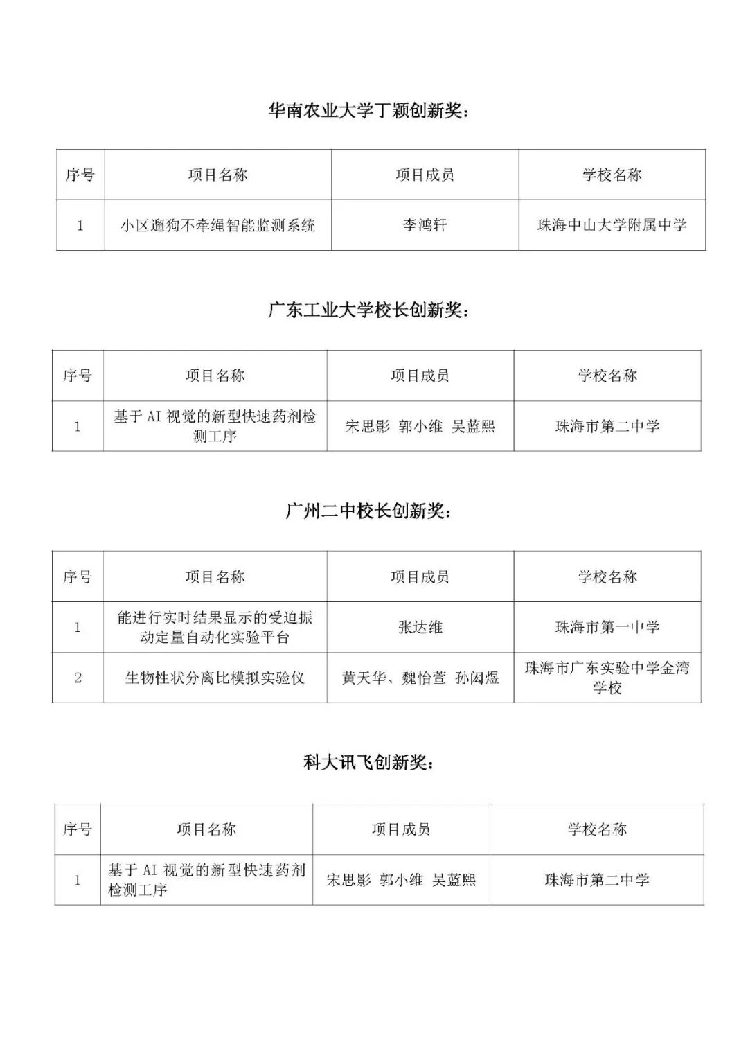 珠海代表队获奖情况